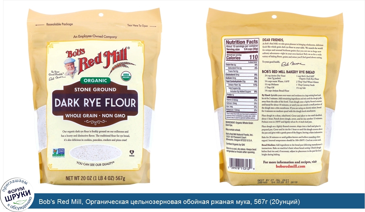 Друзья, если у вас есть отзыв/дополнение/комментарий/вопрос относительно Bob's Red Mill, Органическая цельнозерновая обойная ржаная мука, 567г (20унций) - напишите его ответом в эту тему (это будет полезно всему сообществу в целом и вам в отдельности).