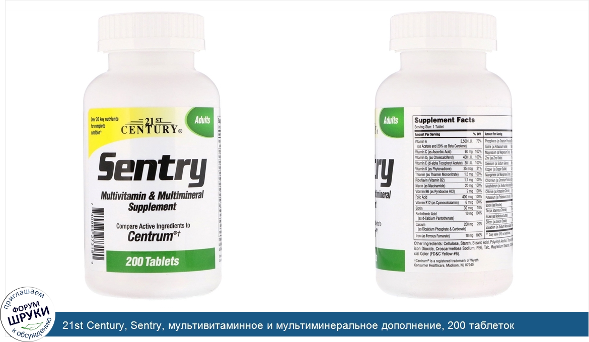 Друзья, если у вас есть отзыв/дополнение/комментарий/вопрос относительно 21st Century, Sentry, мультивитаминное и мультиминеральное дополнение, 200 таблеток - напишите его ответом в эту тему (это будет полезно всему сообществу в целом и вам в отдельности).