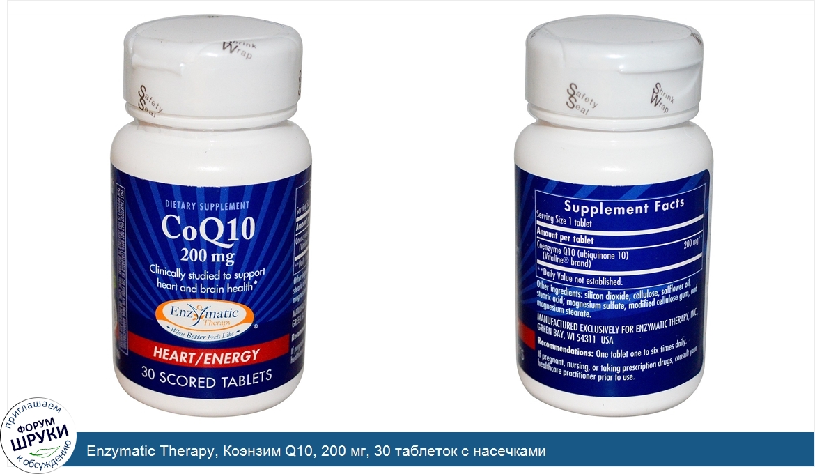 Enzymatic Therapy, Коэнзим Q10, 200 мг, 30 таблеток с насечками