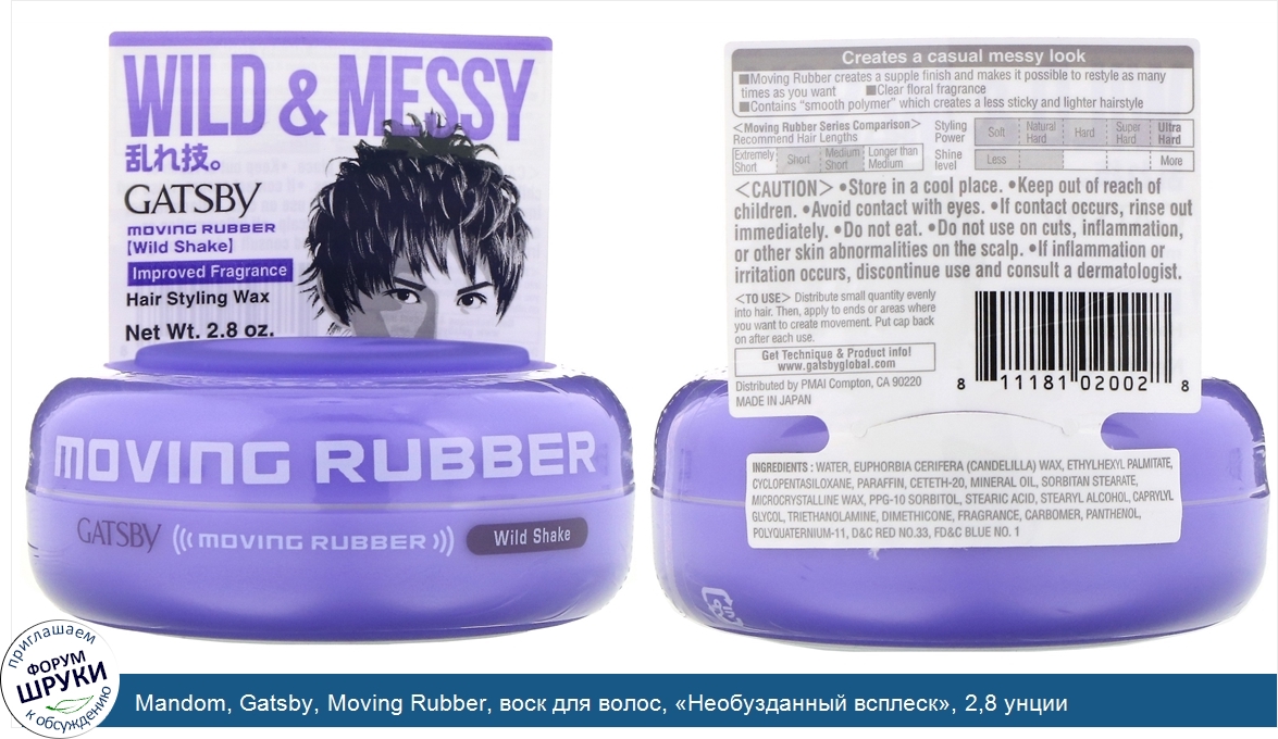 Друзья, если у вас есть отзыв/дополнение/комментарий/вопрос относительно Mandom, Gatsby, Moving Rubber, воск для волос, «Необузданный всплеск», 2,8 унции - напишите его ответом в эту тему (это будет полезно всему сообществу в целом и вам в отдельности).