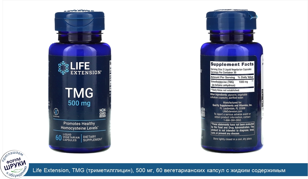Друзья, если у вас есть отзыв/дополнение/комментарий/вопрос относительно Life Extension, TMG (триметилглицин), 500 мг, 60 вегетарианских капсул с жидким содержимым - напишите его ответом в эту тему (это будет полезно всему сообществу в целом и вам в отдельности).