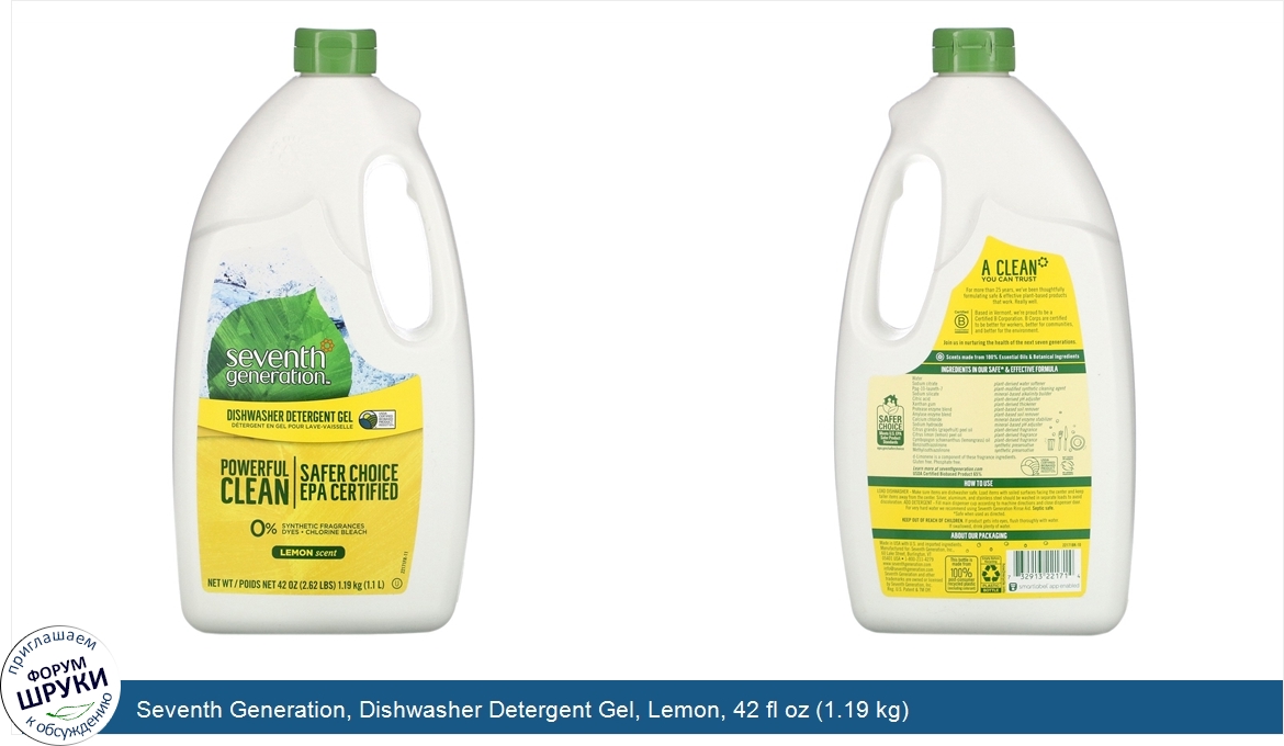 ru Seventh Generation, Dishwasher Detergent Gel, Lemon, 42 fl oz (1.19 kg)