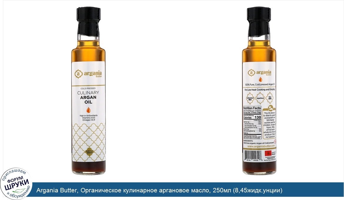 Argania Butter, Органическое кулинарное аргановое масло, 250мл (8,45жидк.унции)
