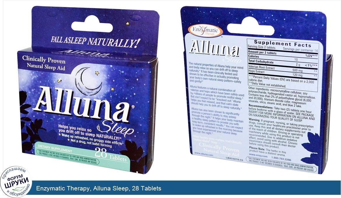 Друзья, если у вас есть отзыв/дополнение/комментарий/вопрос относительно Enzymatic Therapy, Alluna Sleep, 28 Tablets - напишите его ответом в эту тему (это будет полезно всему сообществу в целом и вам в отдельности).