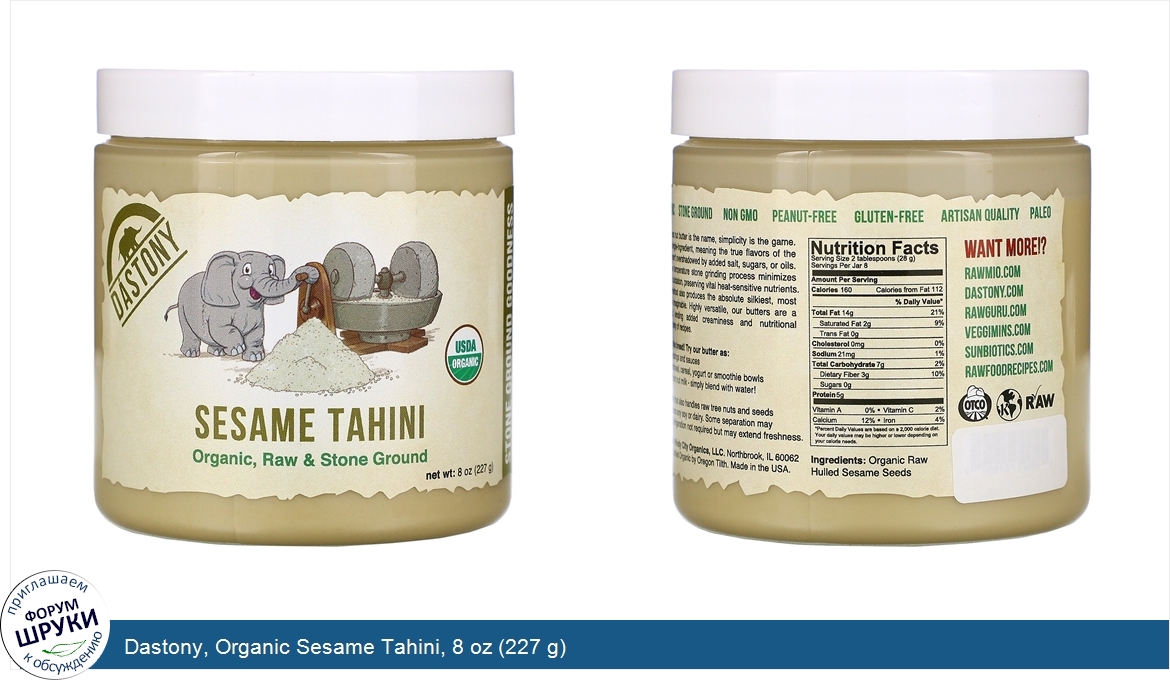 Друзья, если у вас есть отзыв/дополнение/комментарий/вопрос относительно Dastony, Organic Sesame Tahini, 8 oz (227 g) - напишите его ответом в эту тему (это будет полезно всему сообществу в целом и вам в отдельности).