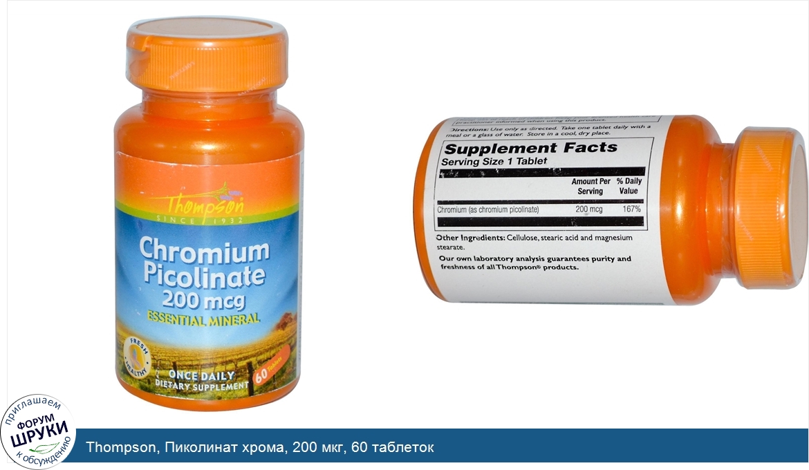 Друзья, если у вас есть отзыв/дополнение/комментарий/вопрос относительно Thompson, Пиколинат хрома, 200 мкг, 60 таблеток - напишите его ответом в эту тему (это будет полезно всему сообществу в целом и вам в отдельности).