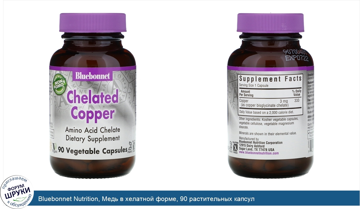 Категории: Bluebonnet Nutrition, Пищевые добавки, Микроэлементы, Медь, Блубоннэт Нутришен, 14229