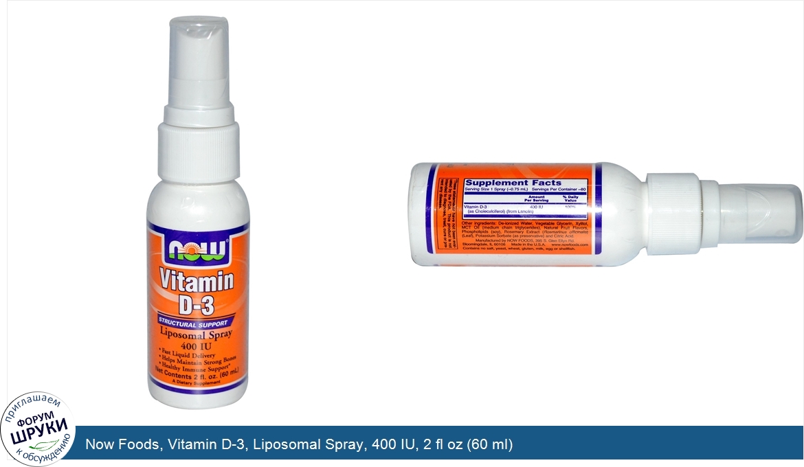 Now Foods, Vitamin D-3, Liposomal Spray, 400 IU, 2 fl oz (60 ml)
