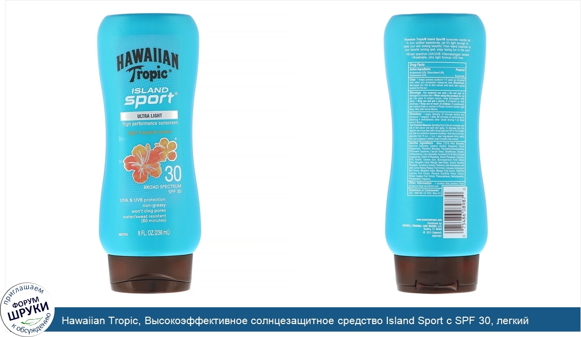Друзья, если у вас есть отзыв/дополнение/комментарий/вопрос относительно Hawaiian Tropic, Высокоэффективное солнцезащитное средство Island Sport с SPF 30, легкий тропический аромат, 236мл - напишите его ответом в эту тему (это будет полезно всему сообществу в целом и вам в отдельности).