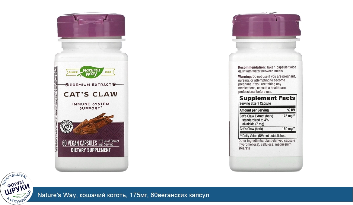 Друзья, если у вас есть отзыв/дополнение/комментарий/вопрос относительно Nature's Way, кошачий коготь, 175мг, 60веганских капсул - напишите его ответом в эту тему (это будет полезно всему сообществу в целом и вам в отдельности).