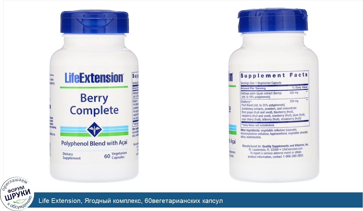 Life Extension, Ягодный комплекс, 60вегетарианских капсул