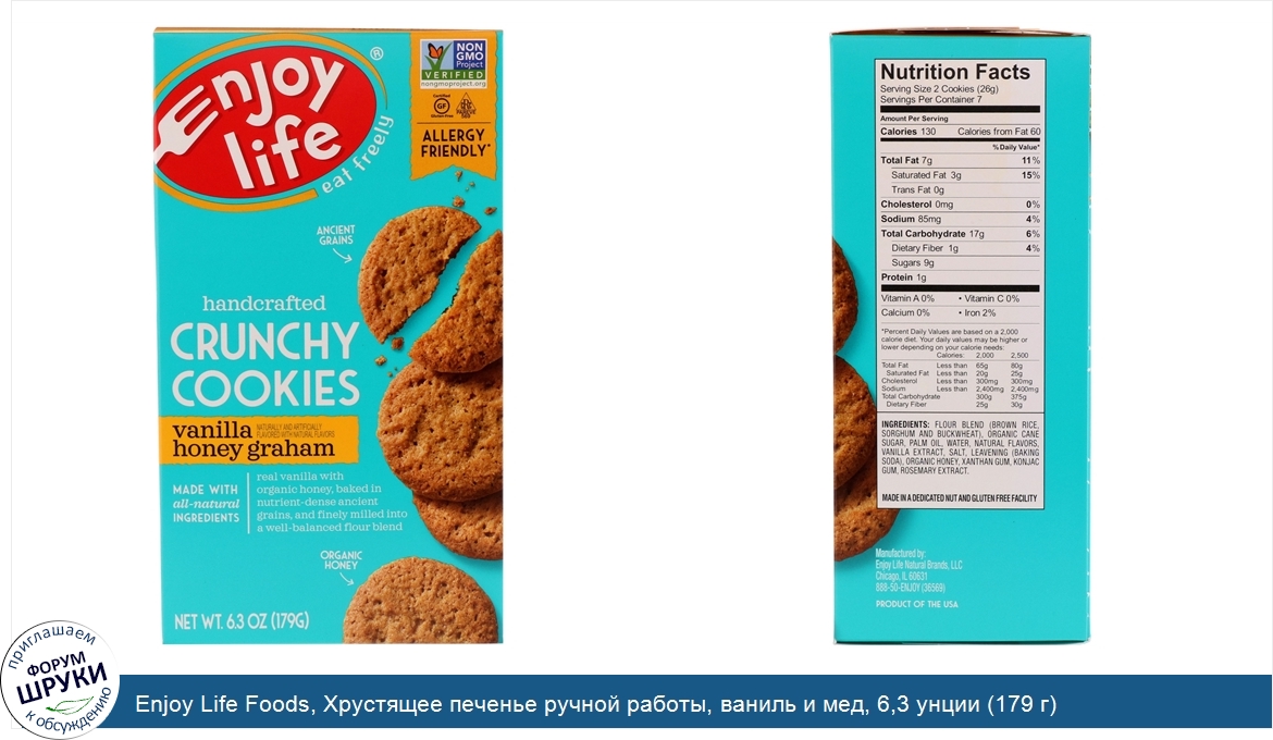 Друзья, если у вас есть отзыв/дополнение/комментарий/вопрос относительно Enjoy Life Foods, Хрустящее печенье ручной работы, ваниль и мед, 6,3 унции (179 г) - напишите его ответом в эту тему (это будет полезно всему сообществу в целом и вам в отдельности).