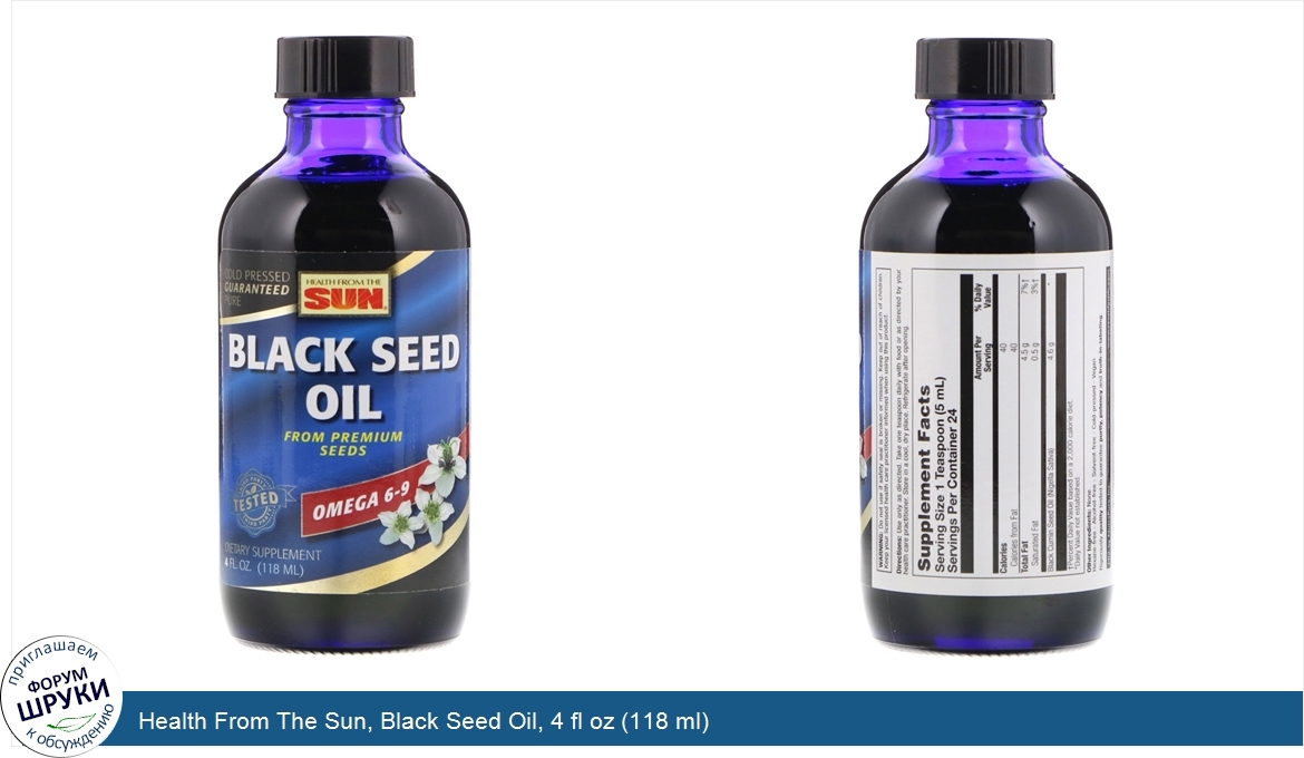 Друзья, если у вас есть отзыв/дополнение/комментарий/вопрос относительно Health From The Sun, Black Seed Oil, 4 fl oz (118 ml) - напишите его ответом в эту тему (это будет полезно всему сообществу в целом и вам в отдельности).