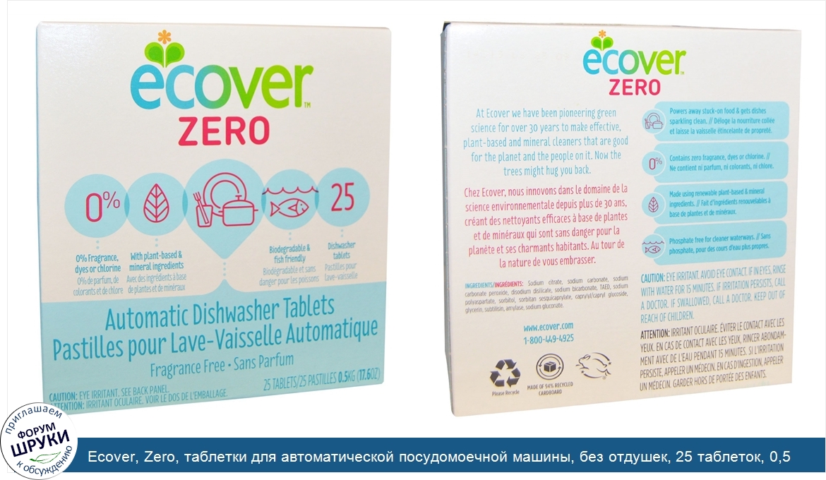 Ecover, Zero, таблетки для автоматической посудомоечной машины, без отдушек, 25 таблеток, 0,5 кг (17,6 унции)