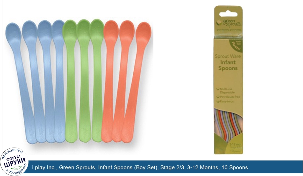 Друзья, если у вас есть отзыв/дополнение/комментарий/вопрос относительно i play Inc., Green Sprouts, Infant Spoons (Boy Set), Stage 2/3, 3-12 Months, 10 Spoons - напишите его ответом в эту тему (это будет полезно всему сообществу в целом и вам в отдельности).