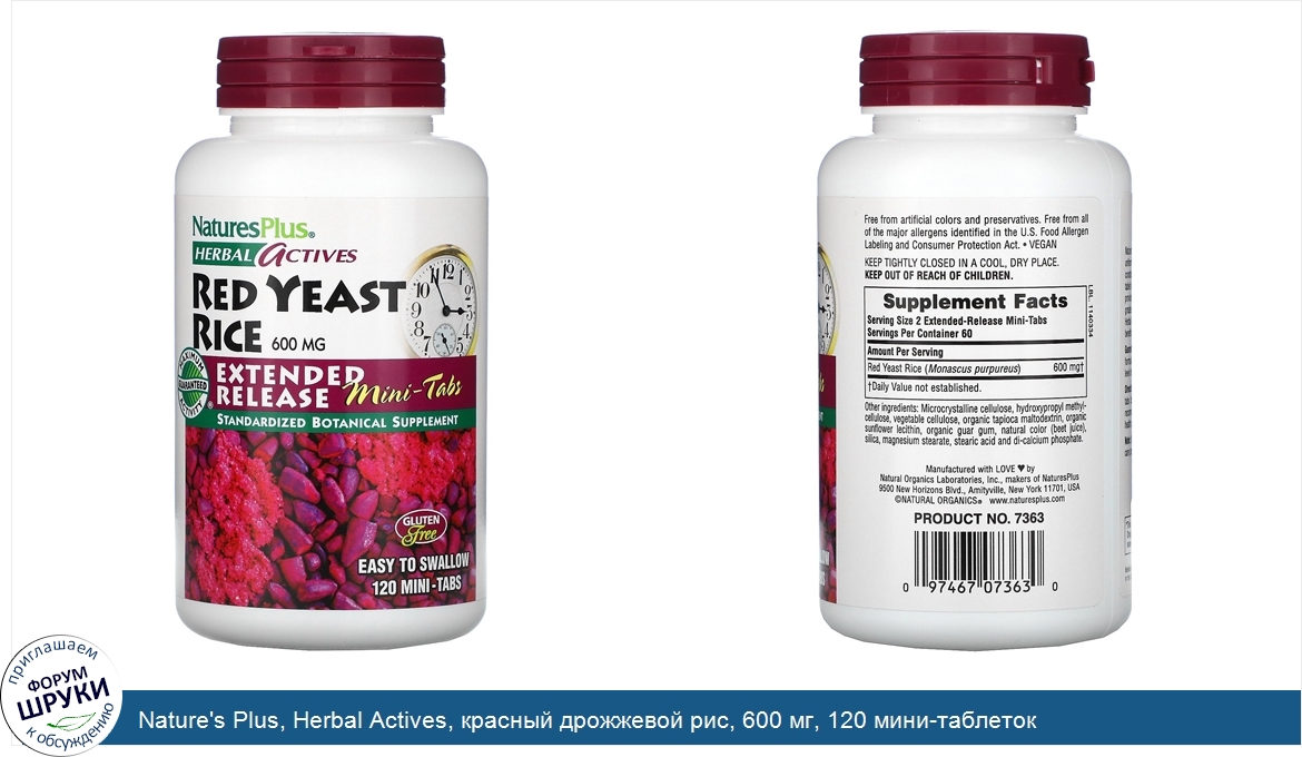 Категории: Nature's Plus, Пищевые добавки, Состояния здоровья, Кровеносная система, Красный дрожжевой рис, Натурес Плюс, 42250