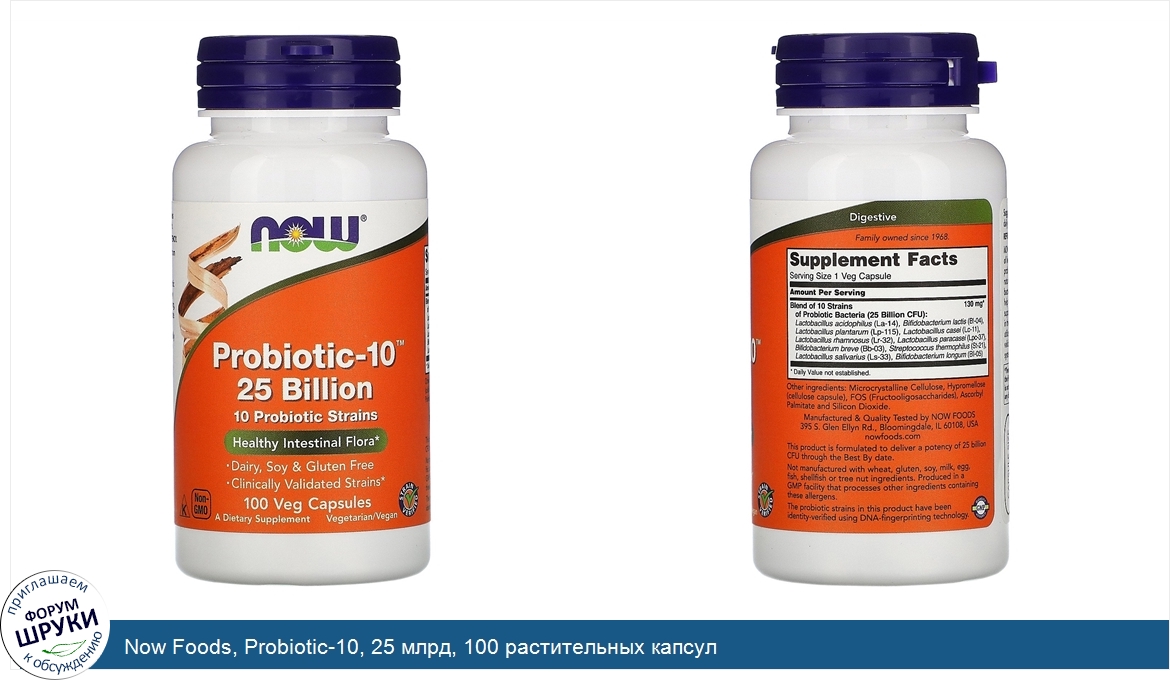 Now Foods, Probiotic-10, 25 млрд, 100 растительных капсул