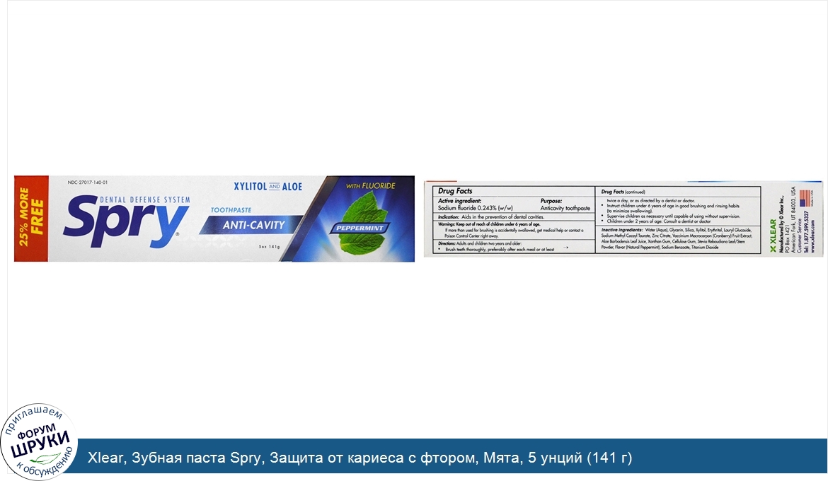 Друзья, если у вас есть отзыв/дополнение/комментарий/вопрос относительно Xlear, Зубная паста Spry, Защита от кариеса с фтором, Мята, 5 унций (141 г) - напишите его ответом в эту тему (это будет полезно всему сообществу в целом и вам в отдельности).