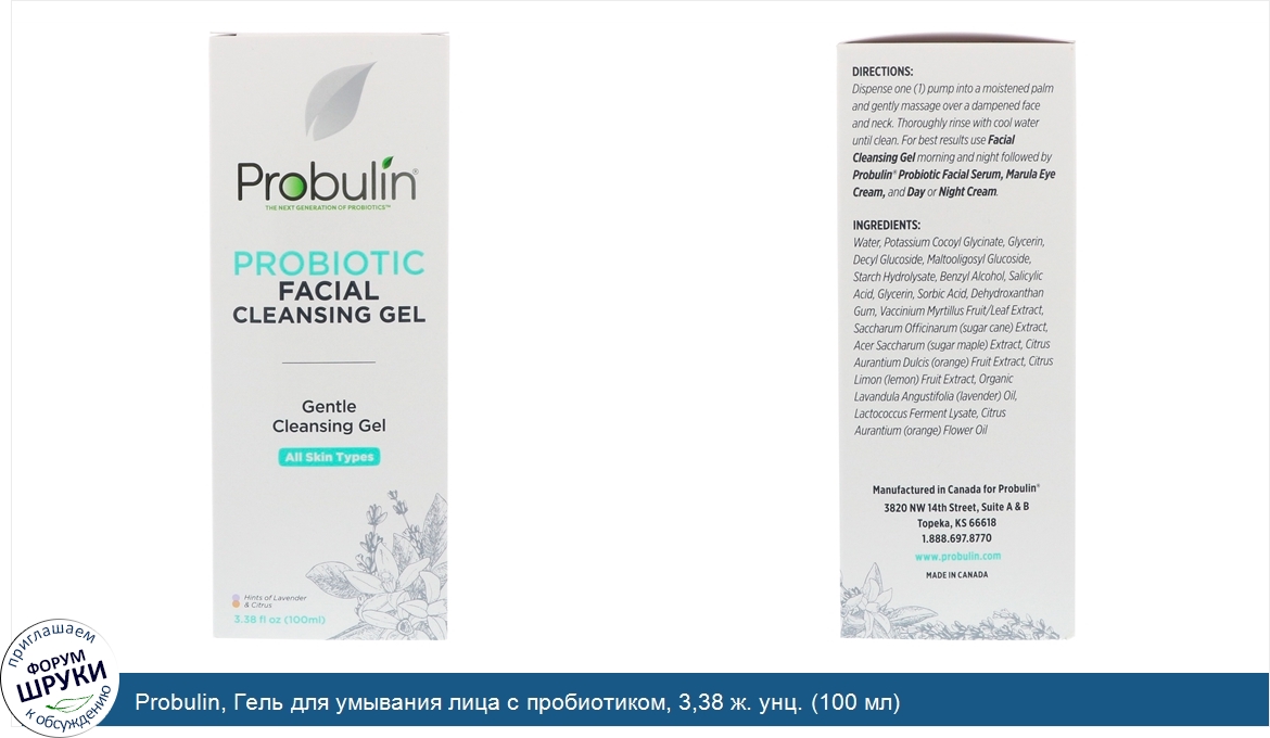 [DESCRIPT]The Next Generation of Probiotics. Gentle Cleansing Gel. All Skin Types. Hints of Lavender Citrus. All ingredients used in Probulin's Skin Care products are:. Free of GMOs*. Sulfate Free. Glycol Free. Cruelty Free. Paraben Free. Phthalate Free. Free of Synthetic Fragrances. Air Travel Compliant. Probulin is a company that believes in a humane and kind approach to creating the absolute best products. Probulin's Probiotic Facial Cleansing Gel gently cleans the face while supporting healthier looking skin. We proudly include scientifically tested ProbuSkin beneficial probiotic lysate that helps to make skin brighter and visibly healthier. Also included are important fruit botanical extracts for added skin cleansing support:. Sugar Cane Extract. Maple Sugar Extract. Citrus Aurantium Fruit Extract. Lemon Fruit Extract. We only use natural essential oils for fragrance. This Probiotic Facial Cleansing Gel offers just a hint of delicate combination of:. Lavender oil. Citrus Aurantium oil. *We do not use ingredients that were produced using biotechnology.[/DESCRIPT]... (описание дополняется)