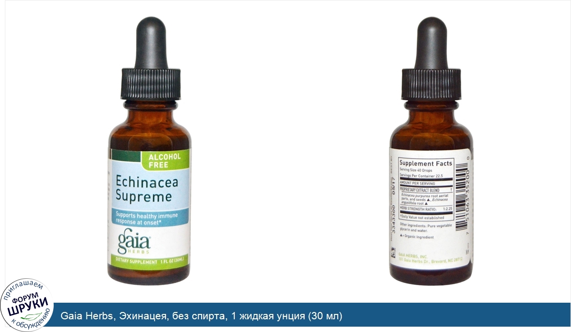 Друзья, если у вас есть отзыв/дополнение/комментарий/вопрос относительно Gaia Herbs, Эхинацея, без спирта, 1 жидкая унция (30 мл) - напишите его ответом в эту тему (это будет полезно всему сообществу в целом и вам в отдельности).