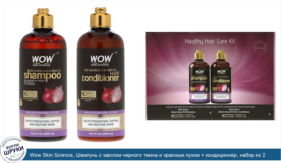 Wow Skin Science, Шампунь с маслом черного тмина и красным луком + кондиционер, набор из 2 продуктов