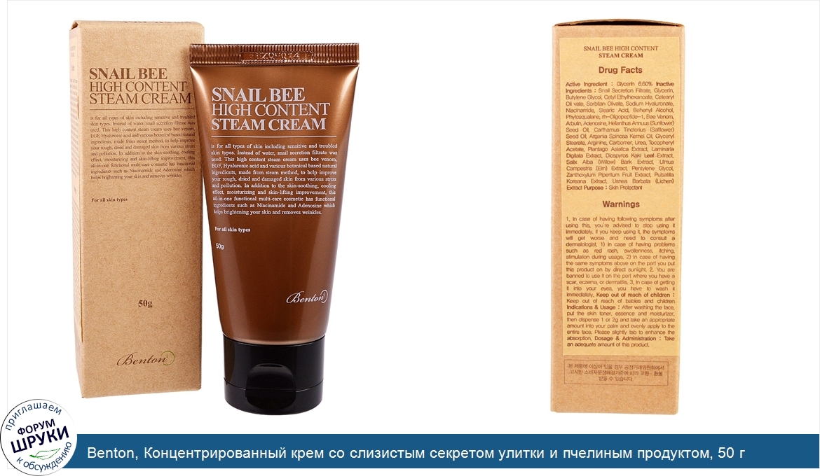 Друзья, если у вас есть отзыв/дополнение/комментарий/вопрос относительно Benton, Концентрированный крем со слизистым секретом улитки и пчелиным продуктом, 50 г - напишите его ответом в эту тему (это будет полезно всему сообществу в целом и вам в отдельности).