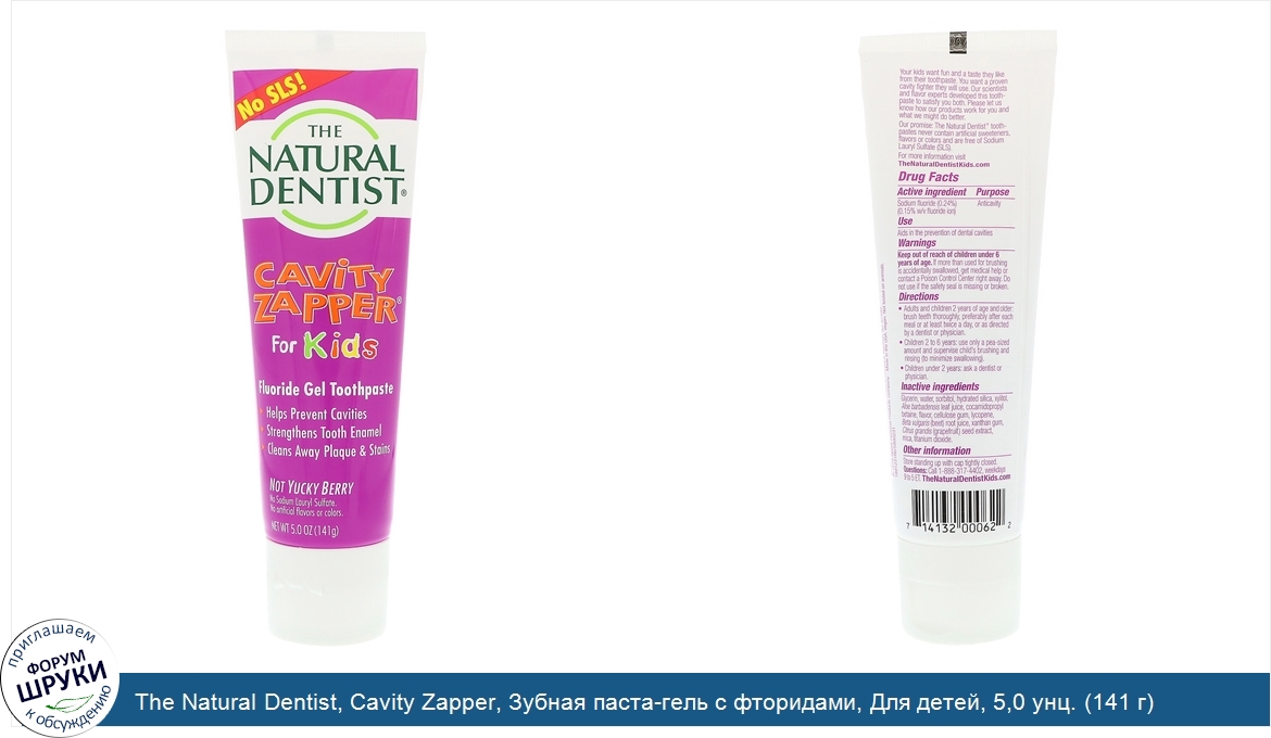 Друзья, если у вас есть отзыв/дополнение/комментарий/вопрос относительно The Natural Dentist, Cavity Zapper, Зубная паста-гель с фторидами, Для детей, 5,0 унц. (141 г) - напишите его ответом в эту тему (это будет полезно всему сообществу в целом и вам в отдельности).