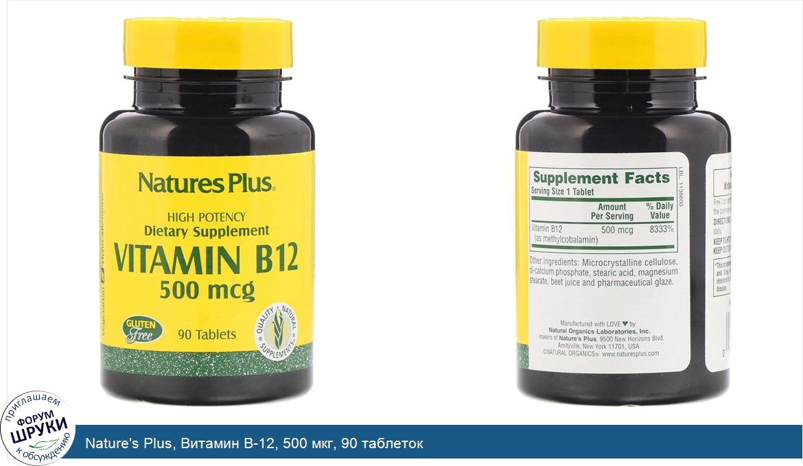 Друзья, если у вас есть отзыв/дополнение/комментарий/вопрос относительно Nature's Plus, Витамин B-12, 500 мкг, 90 таблеток - напишите его ответом в эту тему (это будет полезно всему сообществу в целом и вам в отдельности).