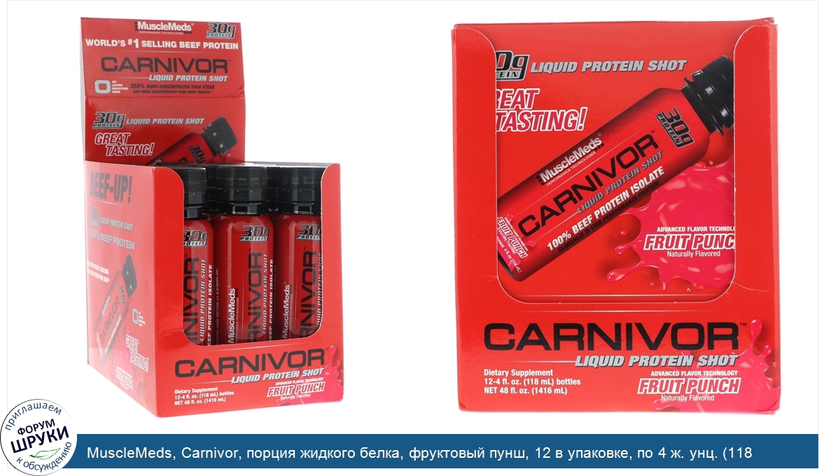 MuscleMeds, Carnivor, порция жидкого белка, фруктовый пунш, 12 в упаковке, по 4 ж. унц. (118 мл)