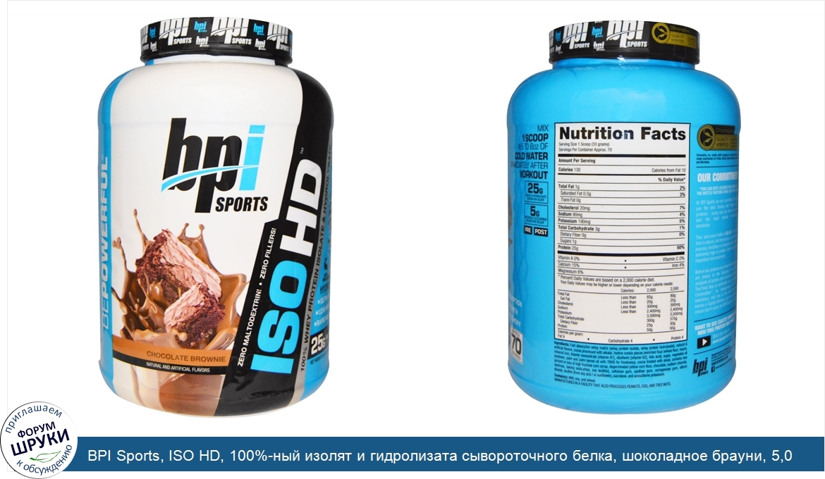 Друзья, если у вас есть отзыв/дополнение/комментарий/вопрос относительно BPI Sports, ISO HD, 100%-ный изолят и гидролизата сывороточного белка, шоколадное брауни, 5,0 фунтов (2285 г) - напишите его ответом в эту тему (это будет полезно всему сообществу в целом и вам в отдельности).