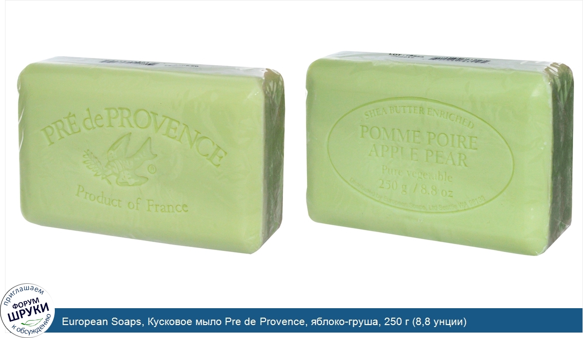 Друзья, если у вас есть отзыв/дополнение/комментарий/вопрос относительно European Soaps, Кусковое мыло Pre de Provence, яблоко-груша, 250 г (8,8 унции) - напишите его ответом в эту тему (это будет полезно всему сообществу в целом и вам в отдельности).