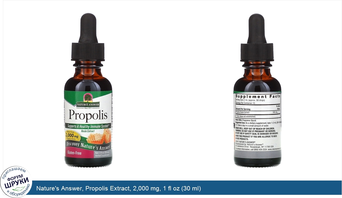 Друзья, если у вас есть отзыв/дополнение/комментарий/вопрос относительно Nature's Answer, Propolis Extract, 2,000 mg, 1 fl oz (30 ml) - напишите его ответом в эту тему (это будет полезно всему сообществу в целом и вам в отдельности).