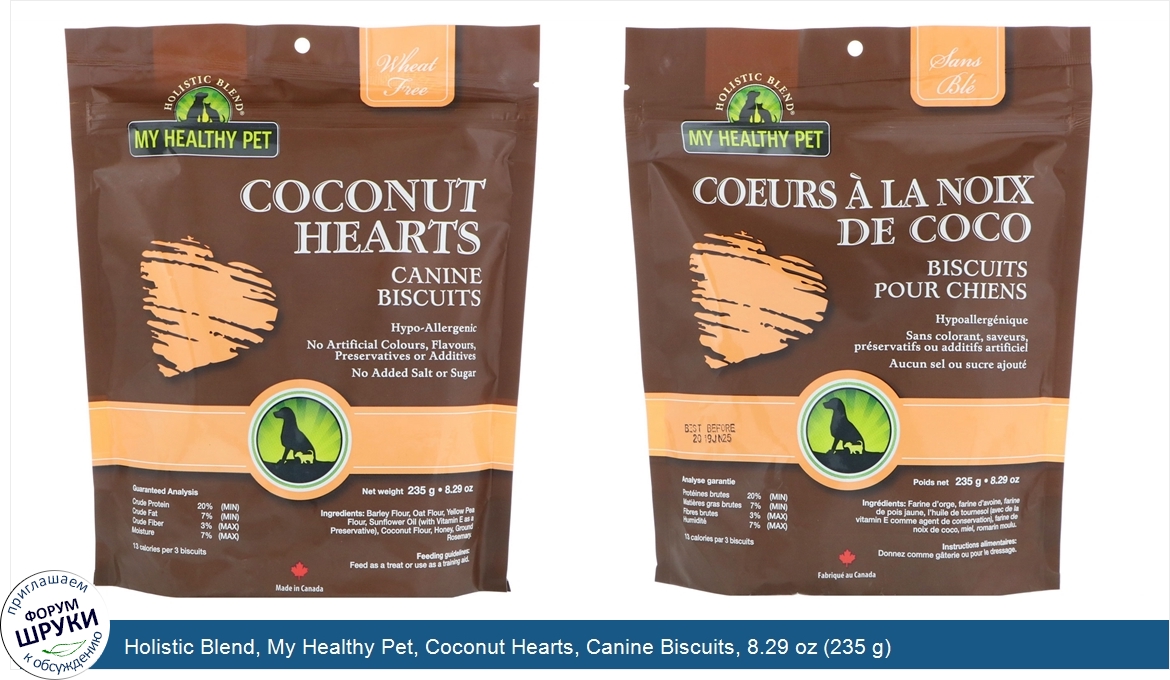Holistic Blend, My Healthy Pet, Coconut Hearts, Canine Biscuits, 8.29 oz (235 g)