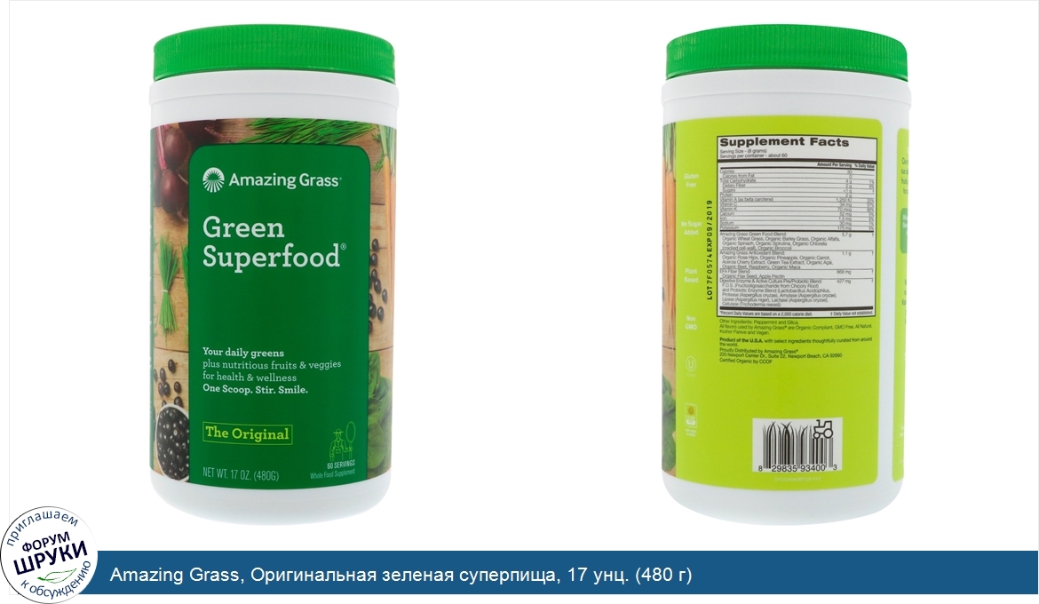 Друзья, если у вас есть отзыв/дополнение/комментарий/вопрос относительно Amazing Grass, Оригинальная зеленая суперпища, 17 унц. (480 г) - напишите его ответом в эту тему (это будет полезно всему сообществу в целом и вам в отдельности).