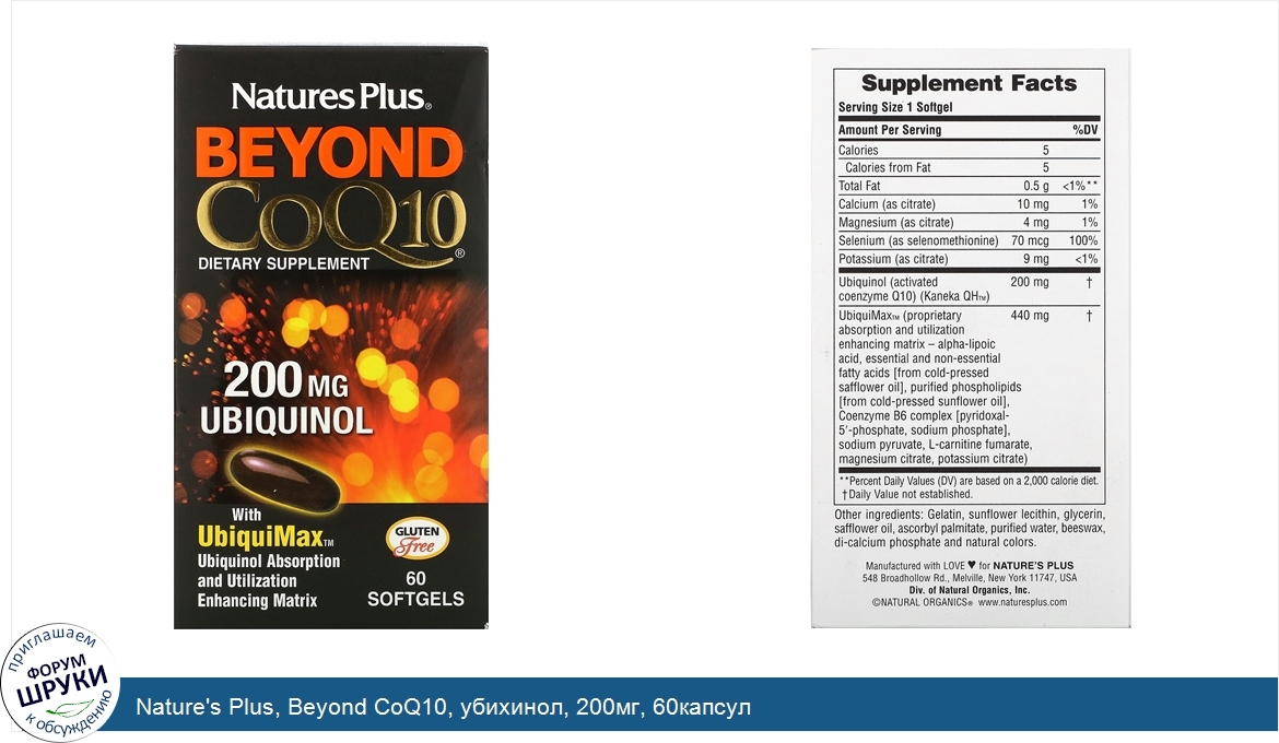 Друзья, если у вас есть отзыв/дополнение/комментарий/вопрос относительно Nature's Plus, Beyond CoQ10, убихинол, 200мг, 60капсул - напишите его ответом в эту тему (это будет полезно всему сообществу в целом и вам в отдельности).