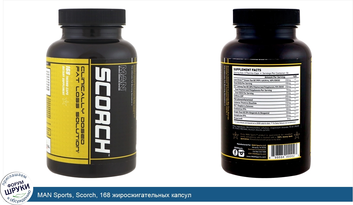 MAN Sports, Scorch, 168 жиросжигательных капсул