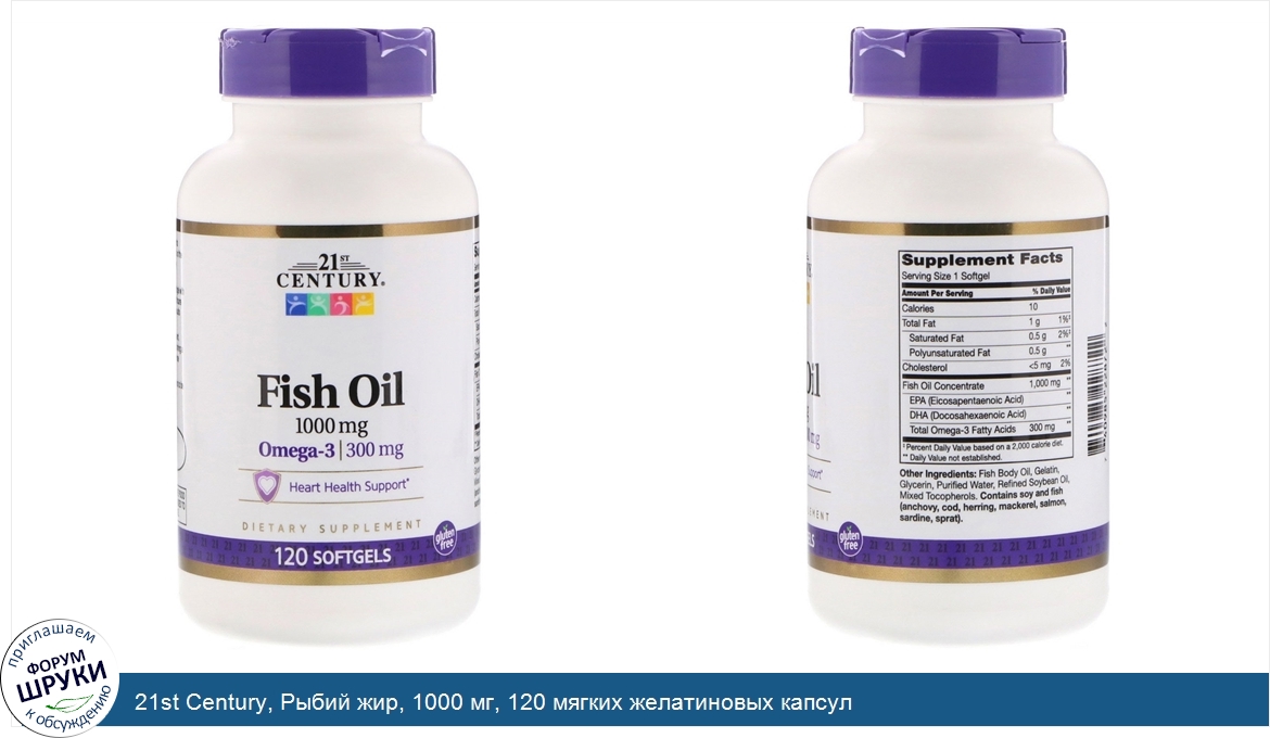 Друзья, если у вас есть отзыв/дополнение/комментарий/вопрос относительно 21st Century, Рыбий жир, 1000 мг, 120 мягких желатиновых капсул - напишите его ответом в эту тему (это будет полезно всему сообществу в целом и вам в отдельности).