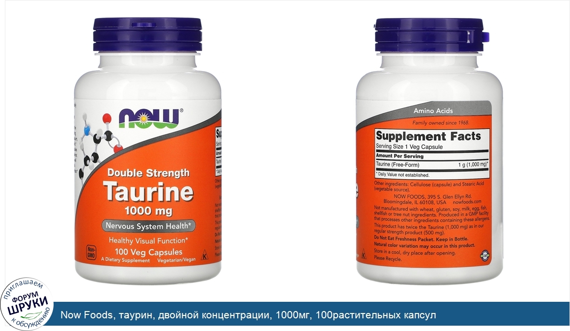 Друзья, если у вас есть отзыв/дополнение/комментарий/вопрос относительно Now Foods, таурин, двойной концентрации, 1000мг, 100растительных капсул - напишите его ответом в эту тему (это будет полезно всему сообществу в целом и вам в отдельности).