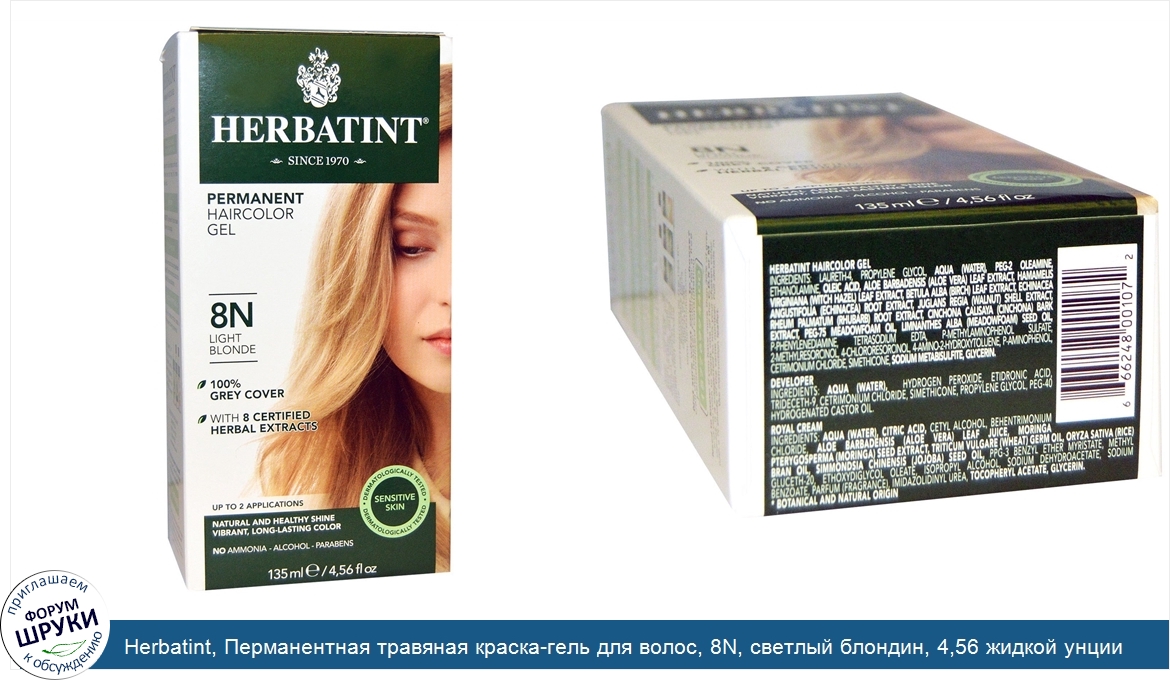 Друзья, если у вас есть отзыв/дополнение/комментарий/вопрос относительно Herbatint, Перманентная травяная краска-гель для волос, 8N, светлый блондин, 4,56 жидкой унции (135 мл) - напишите его ответом в эту тему (это будет полезно всему сообществу в целом и вам в отдельности).