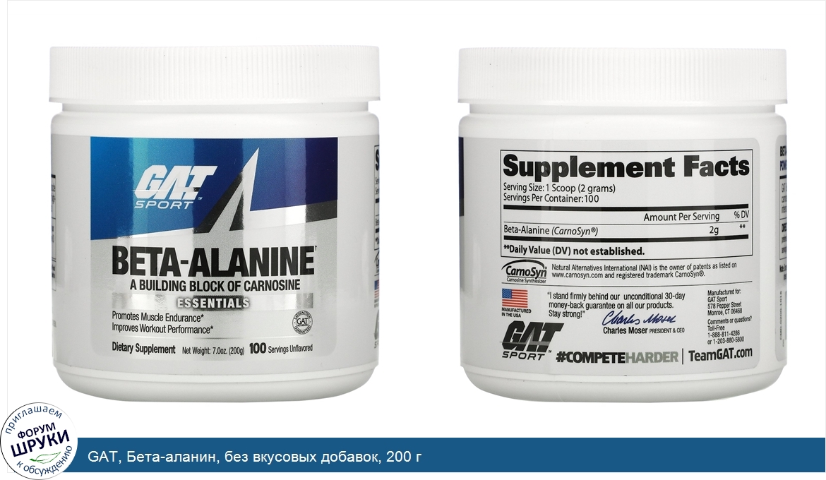 Друзья, если у вас есть отзыв/дополнение/комментарий/вопрос относительно GAT, Бета-аланин, без вкусовых добавок, 200 г - напишите его ответом в эту тему (это будет полезно всему сообществу в целом и вам в отдельности).