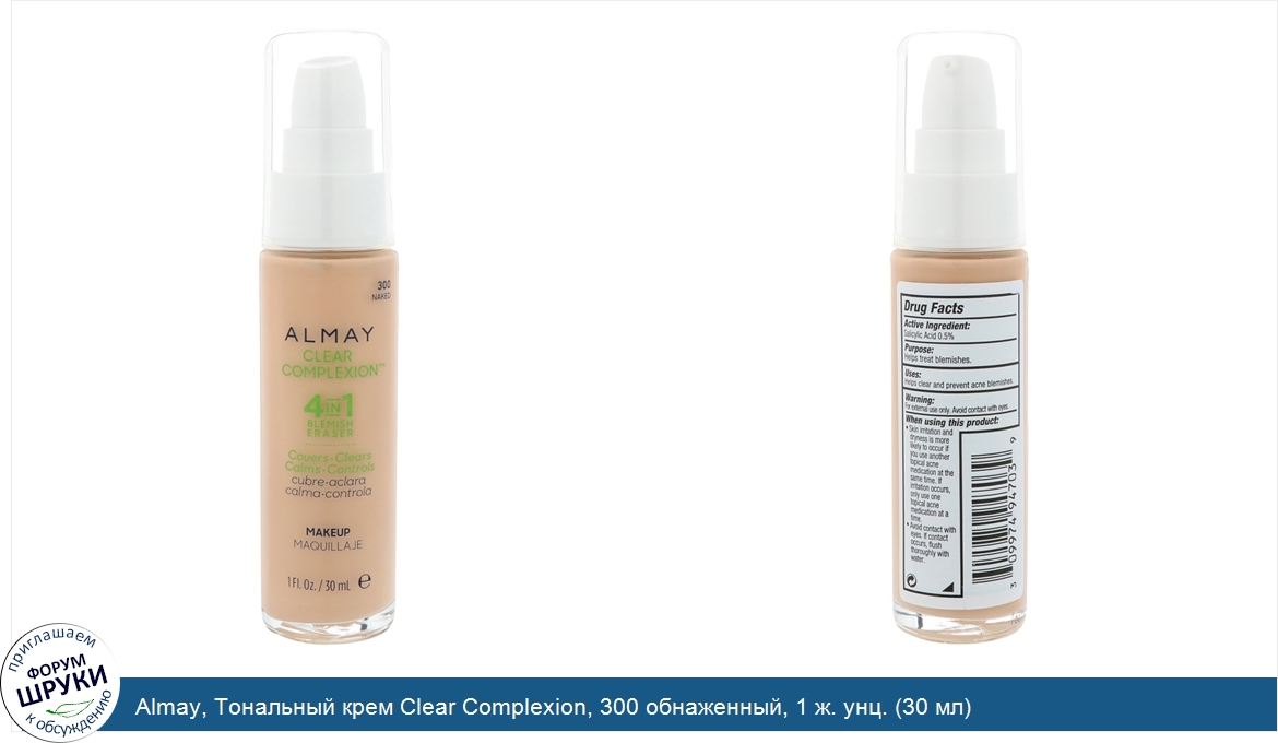 Almay, Тональный крем Clear Complexion, 300 обнаженный, 1 ж. унц. (30 мл)