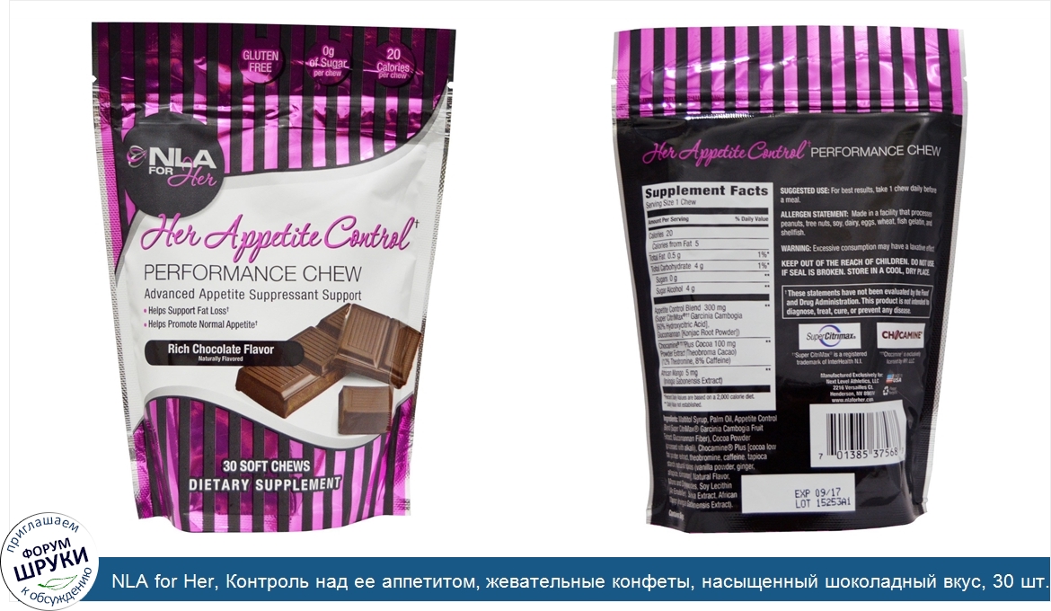 Друзья, если у вас есть отзыв/дополнение/комментарий/вопрос относительно NLA for Her, Контроль над ее аппетитом, жевательные конфеты, насыщенный шоколадный вкус, 30 шт. - напишите его ответом в эту тему (это будет полезно всему сообществу в целом и вам в отдельности).