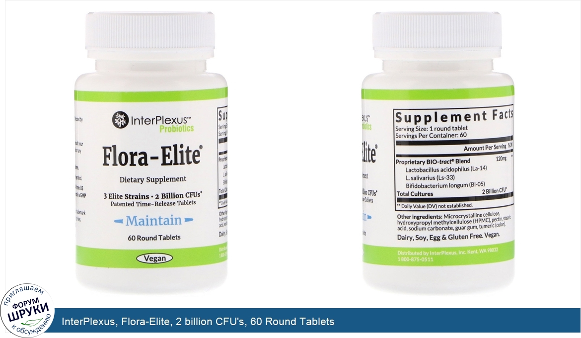 InterPlexus, Flora-Elite, 2 billion CFU's, 60 Round Tablets