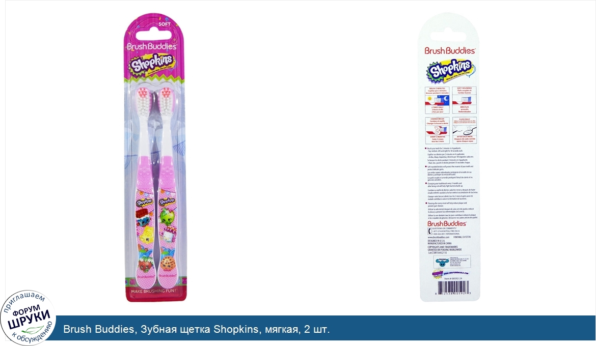Brush Buddies, Зубная щетка Shopkins, мягкая, 2 шт.