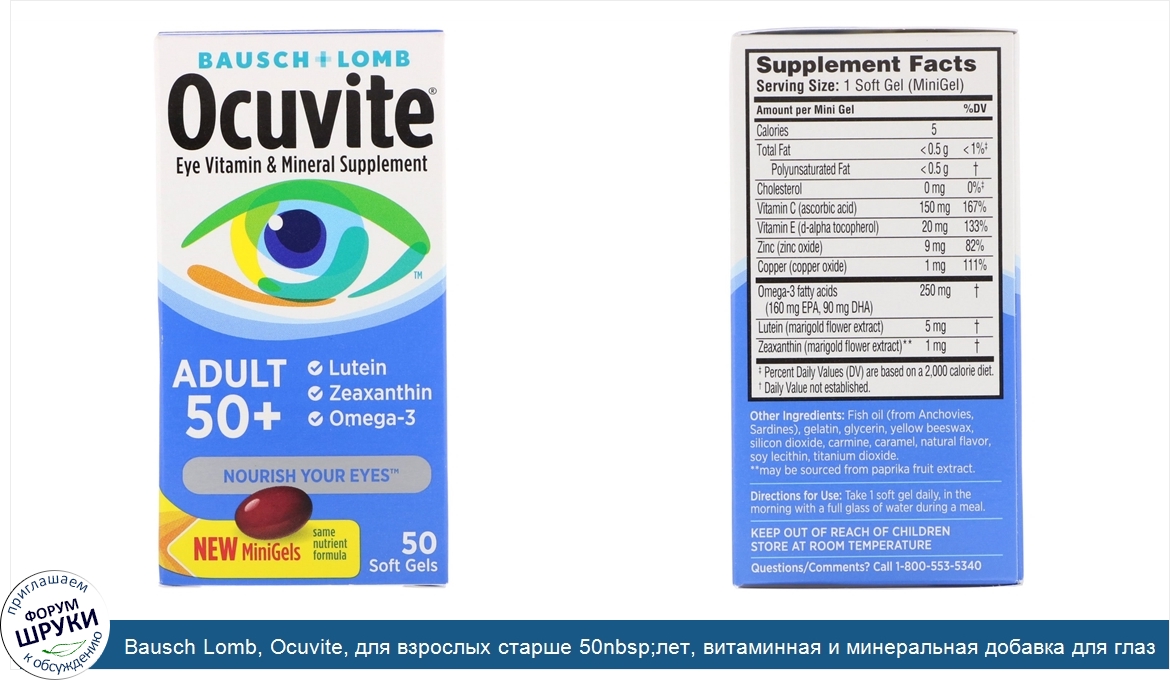Друзья, если у вас есть отзыв/дополнение/комментарий/вопрос относительно Bausch Lomb, Ocuvite, для взрослых старше 50nbsp;лет, витаминная и минеральная добавка для глаз, 50nbsp;мягких таблеток - напишите его ответом в эту тему (это будет полезно всему сообществу в целом и вам в отдельности).