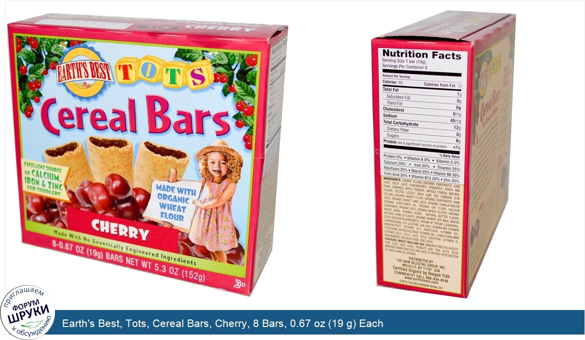 Друзья, если у вас есть отзыв/дополнение/комментарий/вопрос относительно Earth's Best, Tots, Cereal Bars, Cherry, 8 Bars, 0.67 oz (19 g) Each - напишите его ответом в эту тему (это будет полезно всему сообществу в целом и вам в отдельности).