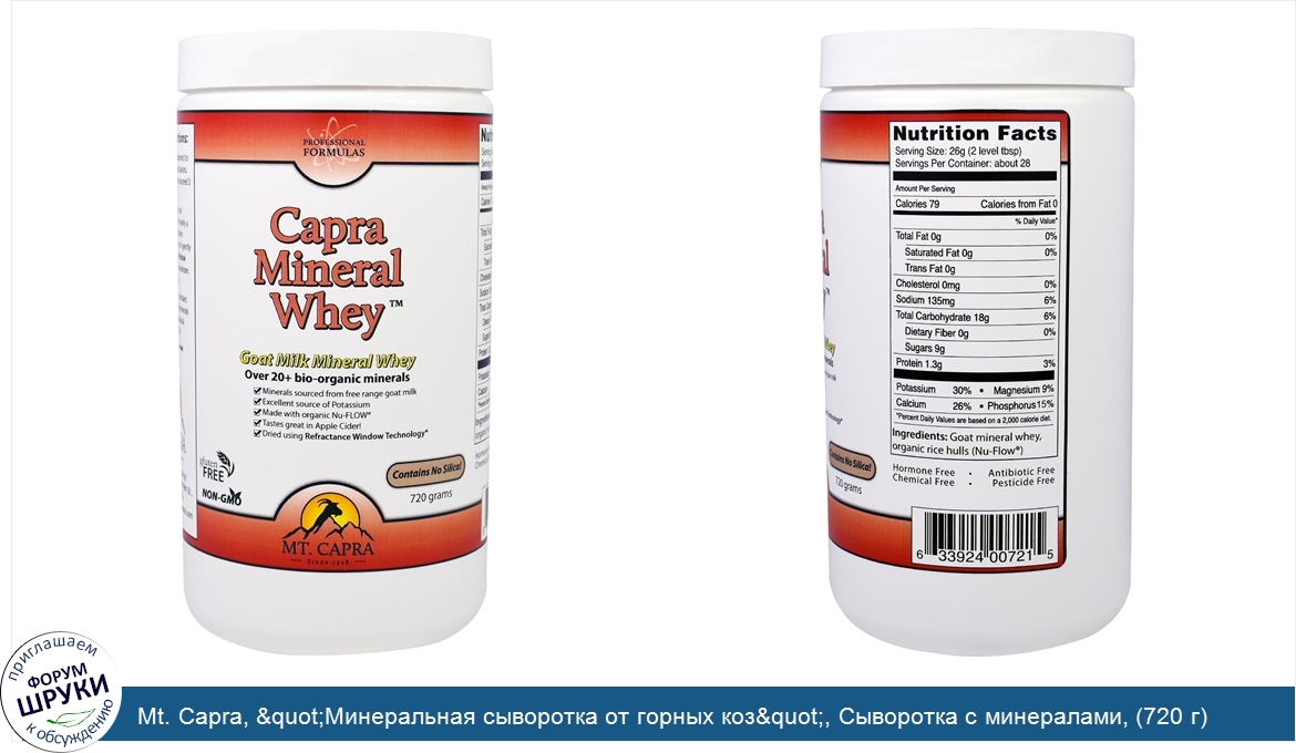Mt. Capra, "Минеральная сыворотка от горных коз", Сыворотка с минералами, (720 г)