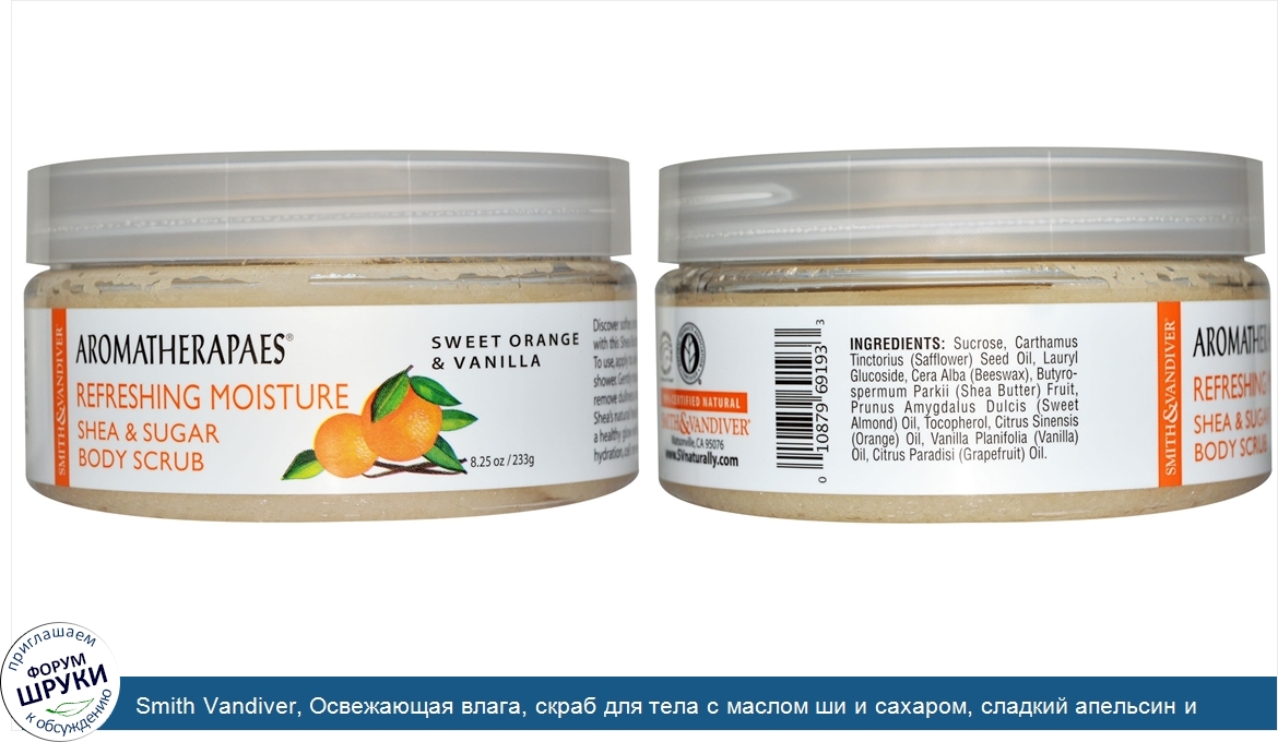 Друзья, если у вас есть отзыв/дополнение/комментарий/вопрос относительно Smith Vandiver, Освежающая влага, скраб для тела с маслом ши и сахаром, сладкий апельсин и ваниль, 8,25 унций (233 г) - напишите его ответом в эту тему (это будет полезно всему сообществу в целом и вам в отдельности).