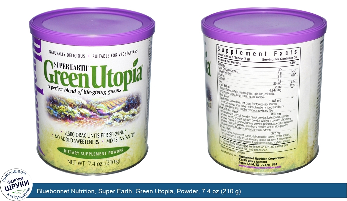 Друзья, если у вас есть отзыв/дополнение/комментарий/вопрос относительно Bluebonnet Nutrition, Super Earth, Green Utopia, Powder, 7.4 oz (210 g) - напишите его ответом в эту тему (это будет полезно всему сообществу в целом и вам в отдельности).