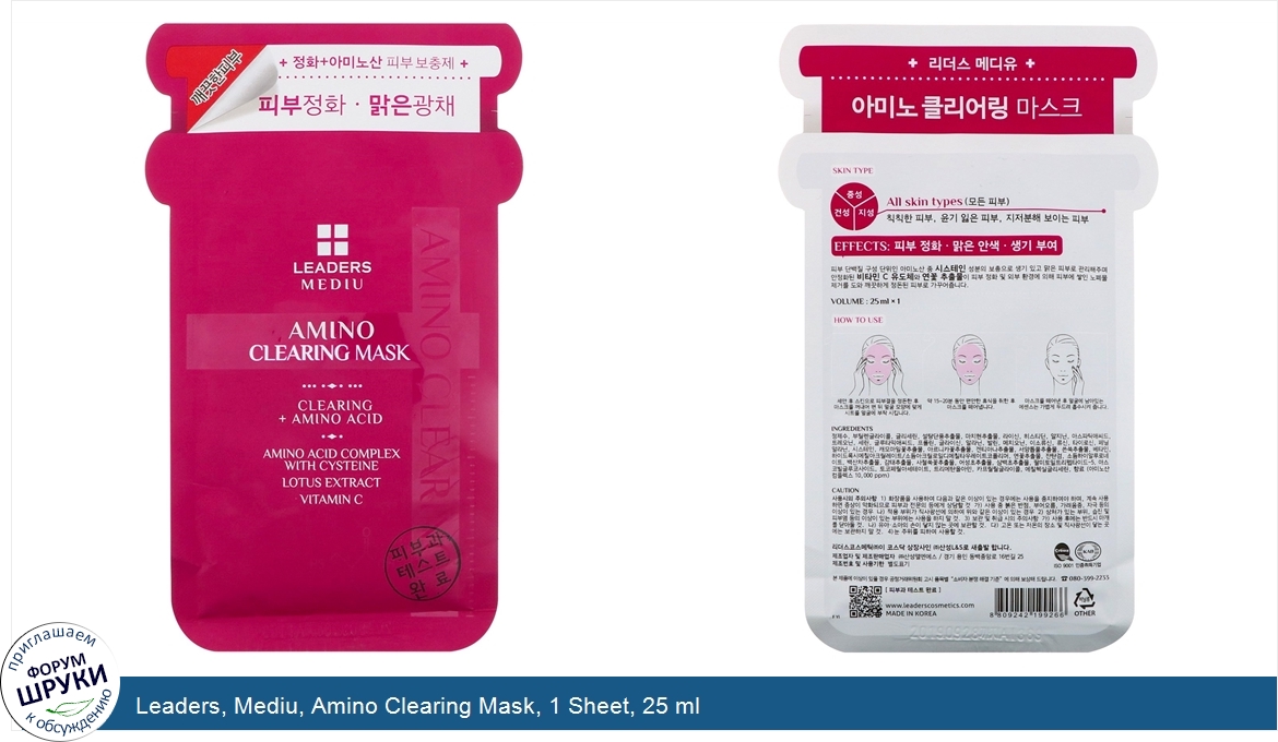 Leaders, Mediu, Amino Clearing Mask, 1 Sheet, 25 ml